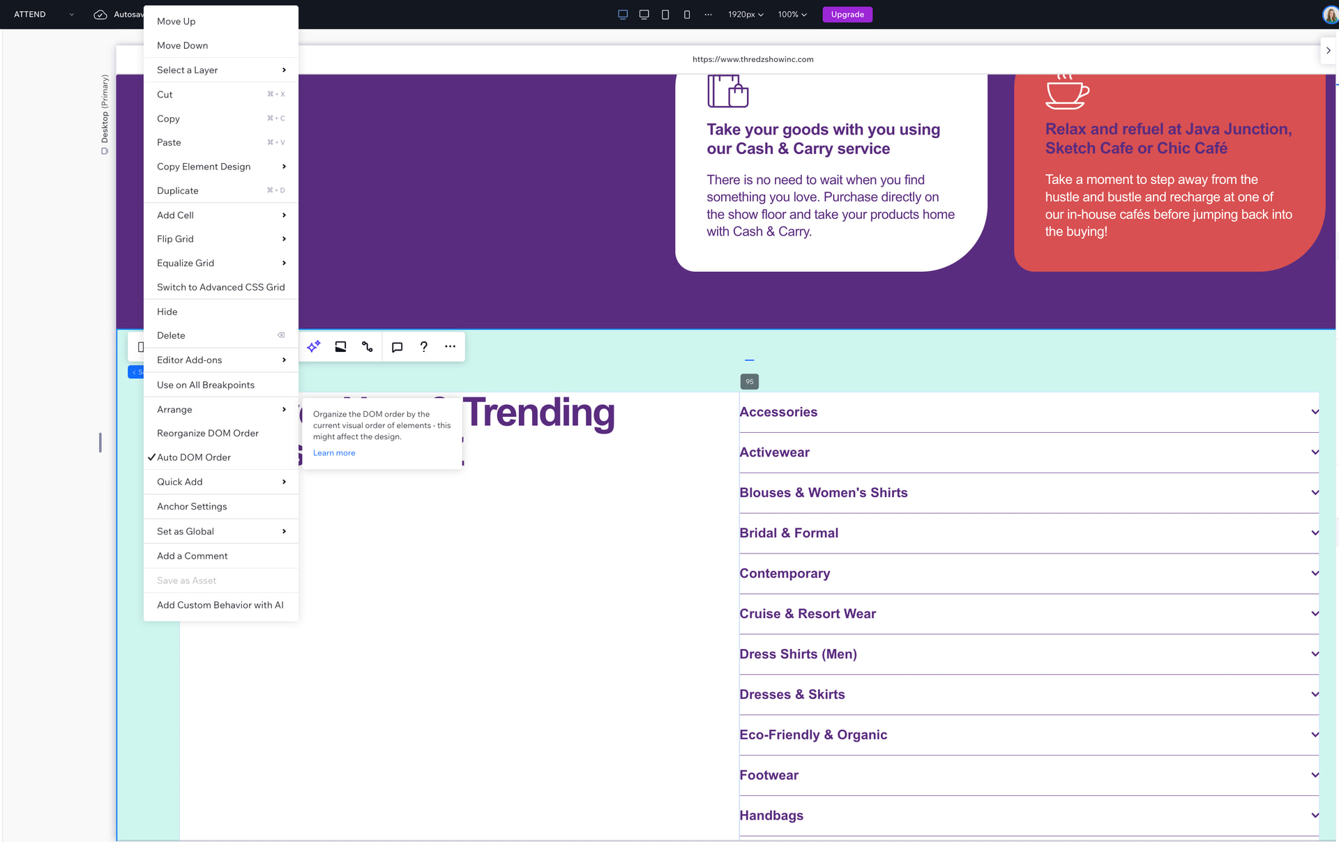 You can try a few things here. In Wix Studio, some elements like accordions or interactive components don’t always save properly as section assets.