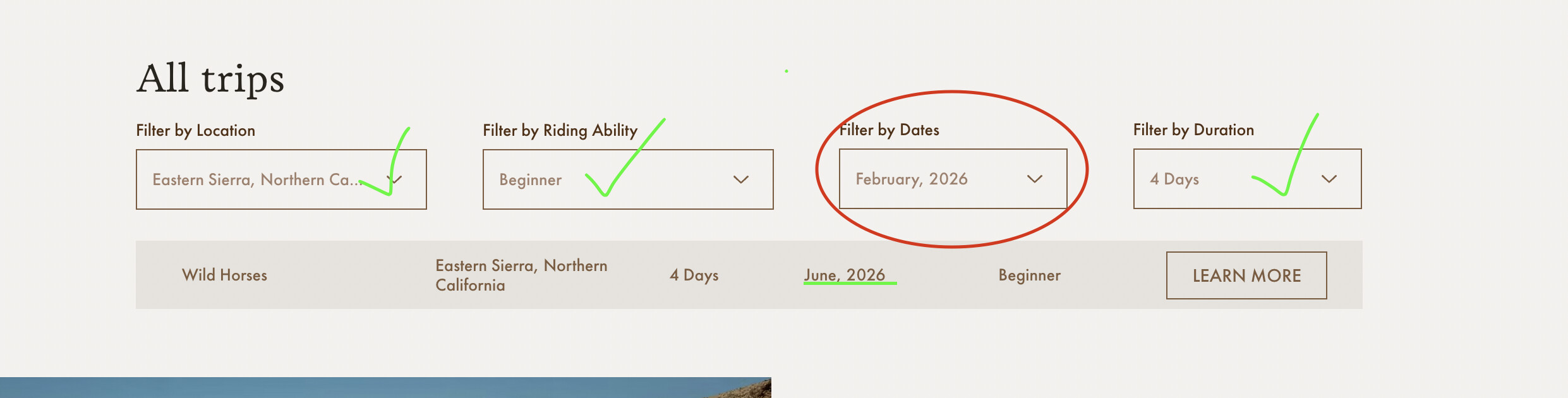 I’m building an event filter system using a repeater connected to a CMS dataset. My dropdowns for location, duration, ability, and group size are working fine — they’re connected to the dataset via the UI. The issue is with the month/date dropdown — I need to control the order (Jan → Feb → Mar), but when it’s connected to the CMS, it displays alphabetically. So I’ve manually added the dropdown options instead, but I’m stuck trying to get it to filter the dataset with Velo and work alongside the other dropdowns. Has anyone successfully done this? Would love help getting the code right so all dropdowns filter together properly.