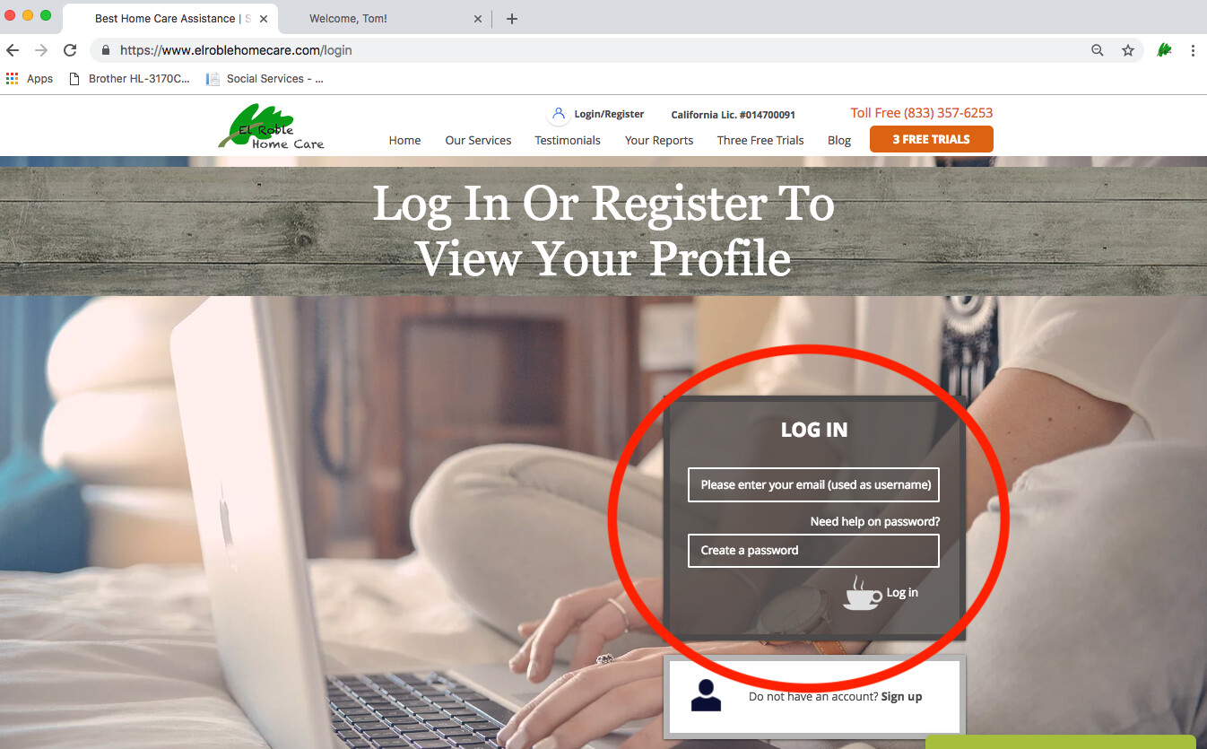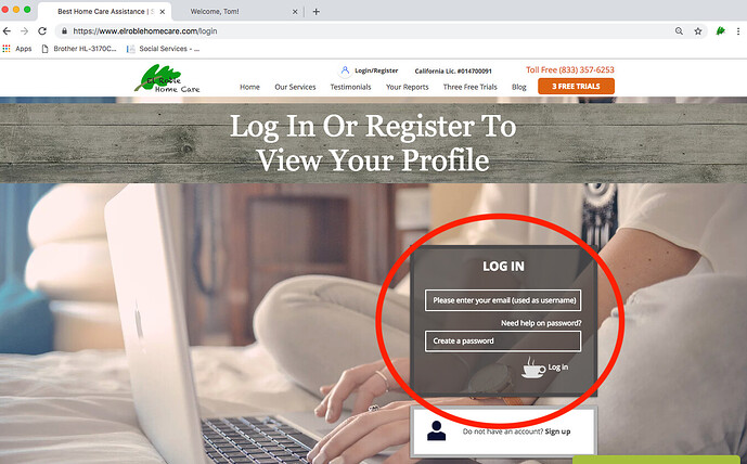 The visitor will be redirected to our own Login/Signup Page. The user can successfully log in through the portal (circled in red) on the Login/Signup Page