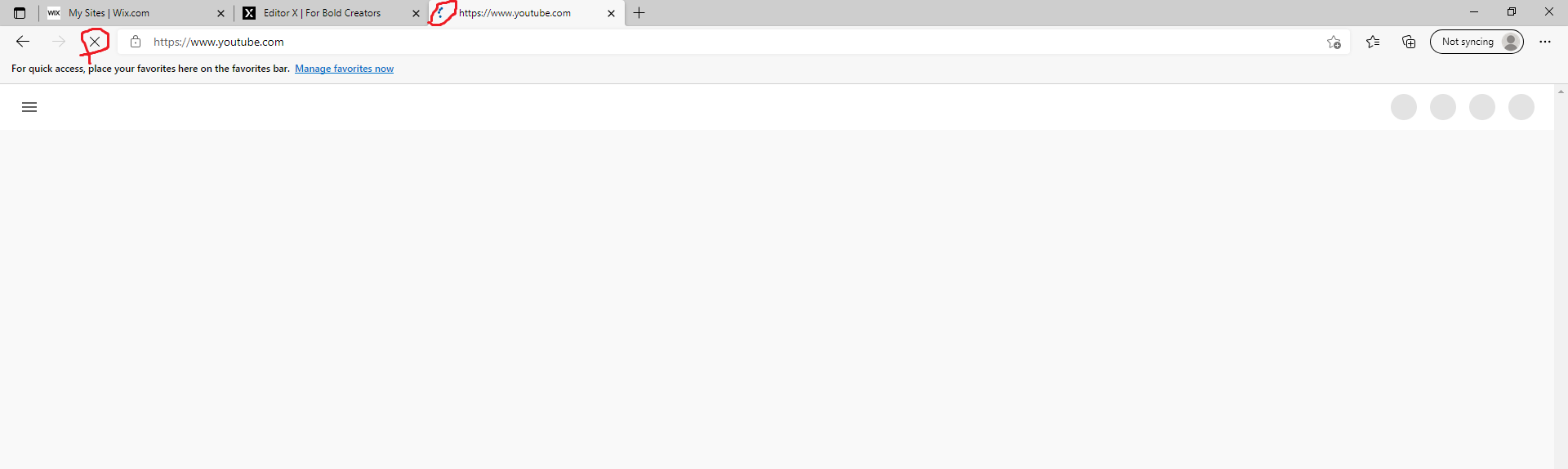 - Now go back to page 1. If you click on the second link “link to a different website”, it will load the external website (youtube) , but now the browser will actually look like it’s loading a new page - there is a loader animation that is added to the browser tab and the refresh button is replaced with an “X” button. This is what the browser looks like when a new page is loading: