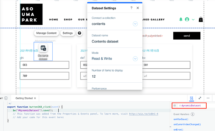 $w ( ‘#saveBtn’ ). onClick (() => { $w ( ‘#dataset1, #dataset2, #dataset3’ ). save ();})