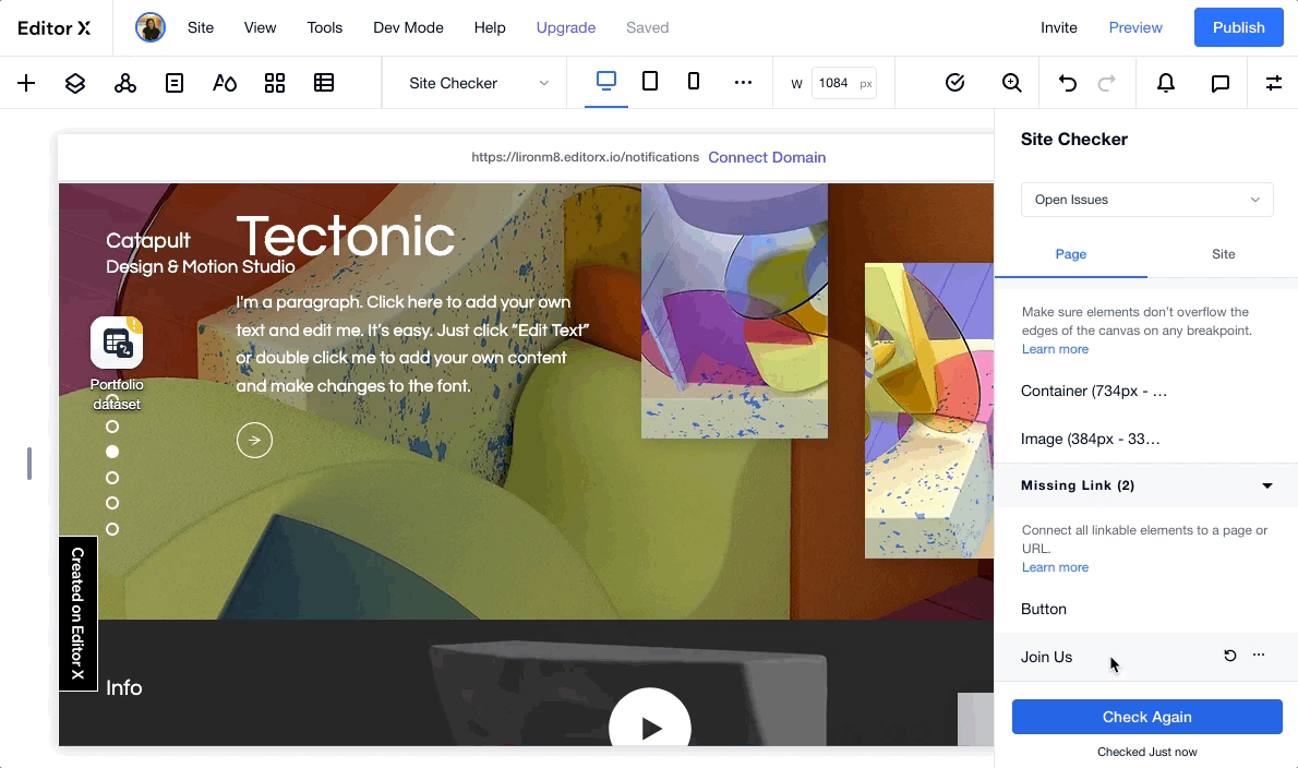 The Site Checker shows many issues and also recommendations for users that are not familiar with breakpoints and didnât check them to make sure everything is adjusted.