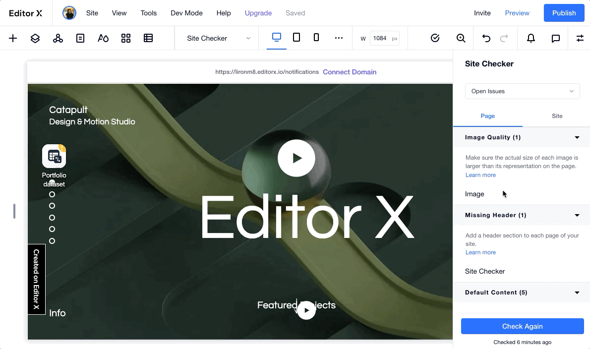 Once you click Check Page, it automatically scans the entire page to find issues related to the different breakpoints, accessibility, security and much more.